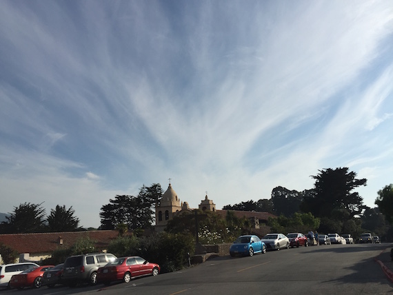 This photo is so miraculous! How the clouds look like rays beaming from the Carmel Mission. Founded June 3, 1770. It stands today as a monument to the great “Missionary of the Cross” who left his home and the comforts of a conventional life to come to our Western wilderness to preach the Gospel of Christ and to teach California’s Native Americans. The Blessed Junipero Serra Of the order of Franciscan friars. He was canonized by Pope Francis during his visit to the USA