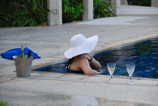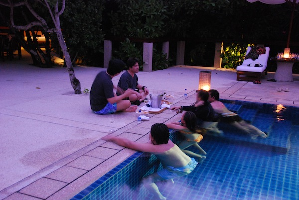 Swimming till before dinner. Â I love the beautiful capiz candleholders they put around the pool area. Â They are available for sale at the Clubhouse shop